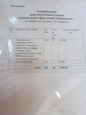 В июне-июле 2015 г. жители Духовщинского района приняли участие в благотворительной акции по сбору самого необходимого для учёбы школьников Донбасса.