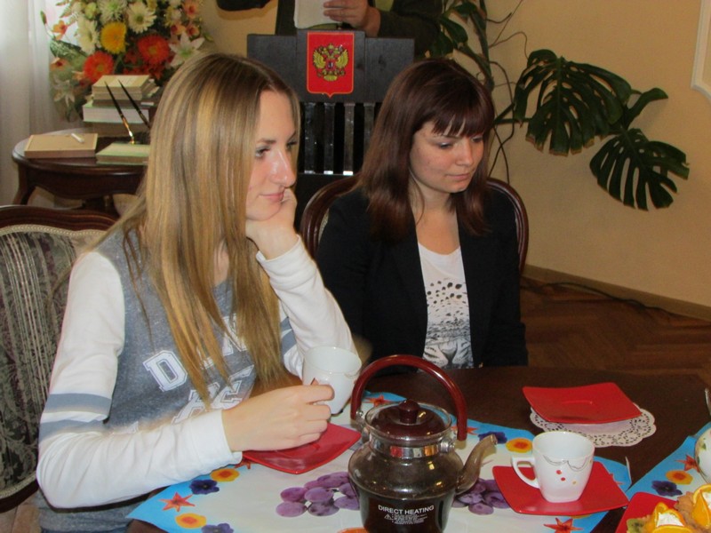 Позже ребята перешли в зал торжественных церемоний, где за чашкой чая состоялась беседа об особенностях регистрации актов гражданского состояния, других юридически значимых действиях с участием несовершеннолетних. В частности, Н.С. Иванова рассказала об особенностях государственной регистрации рождения детей у несовершеннолетних родителей, об условиях снижения брачного возраста, как присваивается фамилия, имя, отчество ребёнку, может ли несовершеннолетний их изменить.
