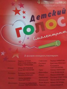 Приглашаем вас на финал конкурса «Детский голос Смоленщины», который состоится 4 декабря 2014 г. в КДЦ «Губернский» (г. Смоленск). Начало – 19.00