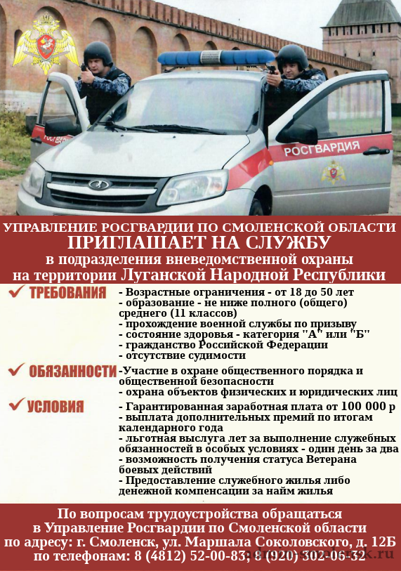 • Управление Росгвардии по Смоленской области приглашает на службу
