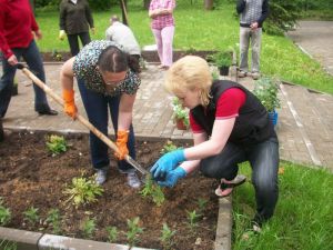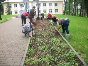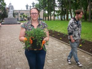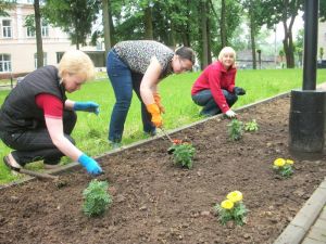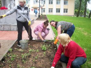 В этот раз были прополоты цветники, идущие вдоль центральной дорожки, которая делит парк возле здания администрации на два равных участка. Цветы и кустарники, высаженные на этих клумбах, вскоре станут радовать своей зеленью не только жителей г. Духовщины, но и её гостей.