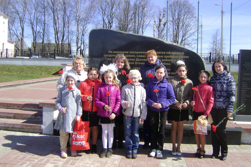 После трудного конкурсного прослушивания и чаепития с пирогами все участники конкурса прошли на экскурсию, организованную работниками Духовщинского историко-художественного музея к памятнику Г. Потемкину. Экскурсия продолжилась возложением цветов на воинский мемориал. Также ребята посетили выставку работ художника Еленецкого В.К. в районном Доме культуры.