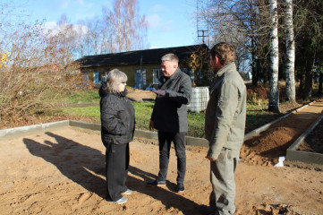 Сегодня глава округа Виктор Молотков вместе со специалистом отдела строительства Ириной Ильяной обсудили с подрядчиком ход работ. До конца ноября здесь планируется уложить бордюрный камень и брусчатку.