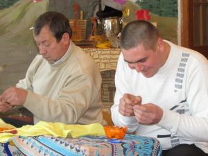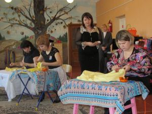 Мамы оказались искусными мастерицами не только в поварском деле, но и в рукоделии. Им пришлось посоревноваться в умении быстро поставить заплатку.