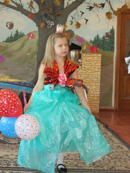 Настоящим шедевром стало платье, придуманное и искусно изготовленное С.В. Кириченко из обёрточной бумаги, которая используется при упаковке цветов.