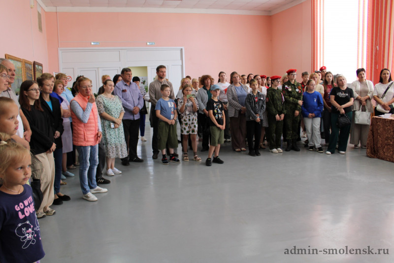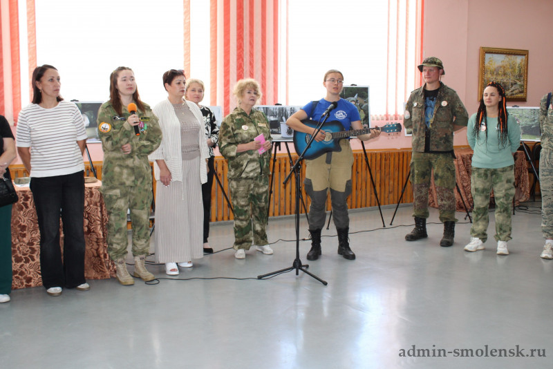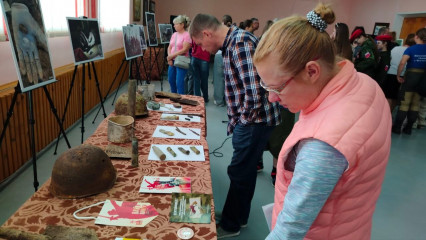 Выставка связана с «Вахтой Памяти», которая проходит в нашем округе с 12 по 23 августа. Нина Германовна Куликовских, руководитель поискового движения в Смоленской области, рассказала: "Нынешняя вахта особенная. Она учебно-тренировочная и проходит уже 27-ой раз. 27-ой раз собираются ребята, чтобы учить молодое поколение и растить смену поисковикам. Несмотря на то, "Вахта" только начала работать, уже есть новости. Духовщинский отряд "Подвиг" за вчерашний день поднял останки пятерых солдат, которых 23 августа захоронят на Поле Памяти в Озерном."