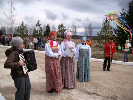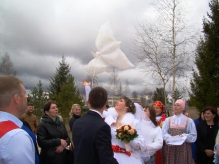 Работники Дома культуры «Энергетик», в русских костюмах, исполнили венчальную песню, родные и друзья приняли активное участие в действии – под музыку раскрутили импровизированную карусель.