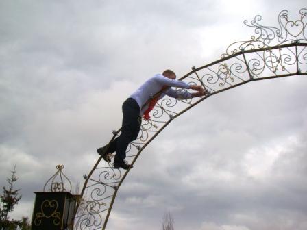 В России появился новый обычай – на парапетах мостов можно наблюдать замочки с выгравированными именами, на деревьях в садах и парках – цветные ленточки. Озерненцы тоже не остались в стороне и отдали дань моде – новоиспеченный муж поднялся на арку и прикрепил замочек – символ вечной любви и соединения жизней.