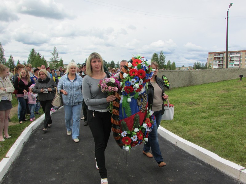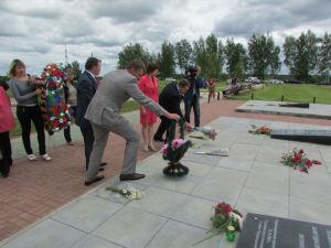 Б.В. Петифоров, гости из Москвы и Смоленска, жители и гости п. Озёрный возложили венки и цветы к обновлённому памятнику.