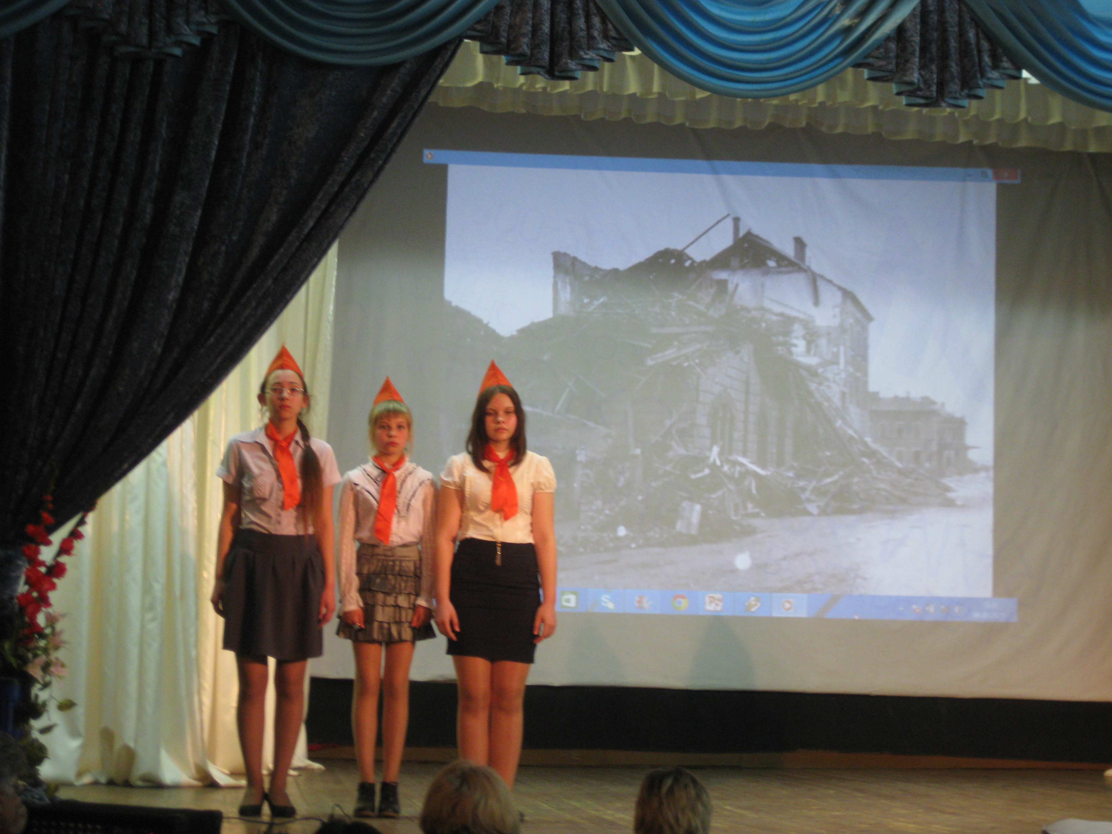 Дети на войне. Такова была основная тема выступлений школьников. На основе материалов книг «Операция – «Дети» и «Духовщинский сёстры Хатыни» ребята представили зрителям инсценировки, стихи, песни.