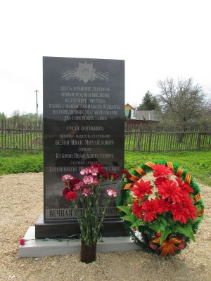 В сентябре 1943 года в районе деревень Новая Земля и Введенье в бою с фашистами были подбиты и сгорели вместе с экипажами два советских танка. Среди погибших: механик-водитель старший сержант Белов Иван Михайлович, сержант Кубрин Иван Алексеевич, старший сержант Затейников Иван Дмитриевич. Теперь героический поступок советских танкистов увековечен в новом памятнике.
