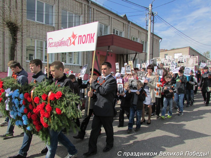 В этот день, 9 мая, Духовщинский район впервые принял участие в акции «Бессмертный полк». Более 50 духовщинцев встали в строй, держа в руках фотографию своего родственника — участника Великой Отечественной войны. «Бессмертный полк» стал равноправным участником торжественного шествия, посвящённого празднику Великой Победы.