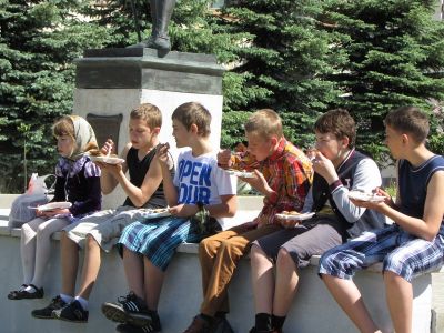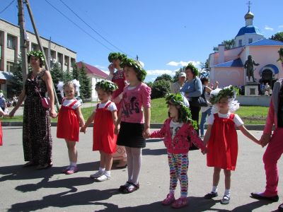 В этом году наш престольный праздник совпал с Днём защиты детей, а потому в этот день в г. Духовщине много веселились, пели, рисовали и танцевали.
