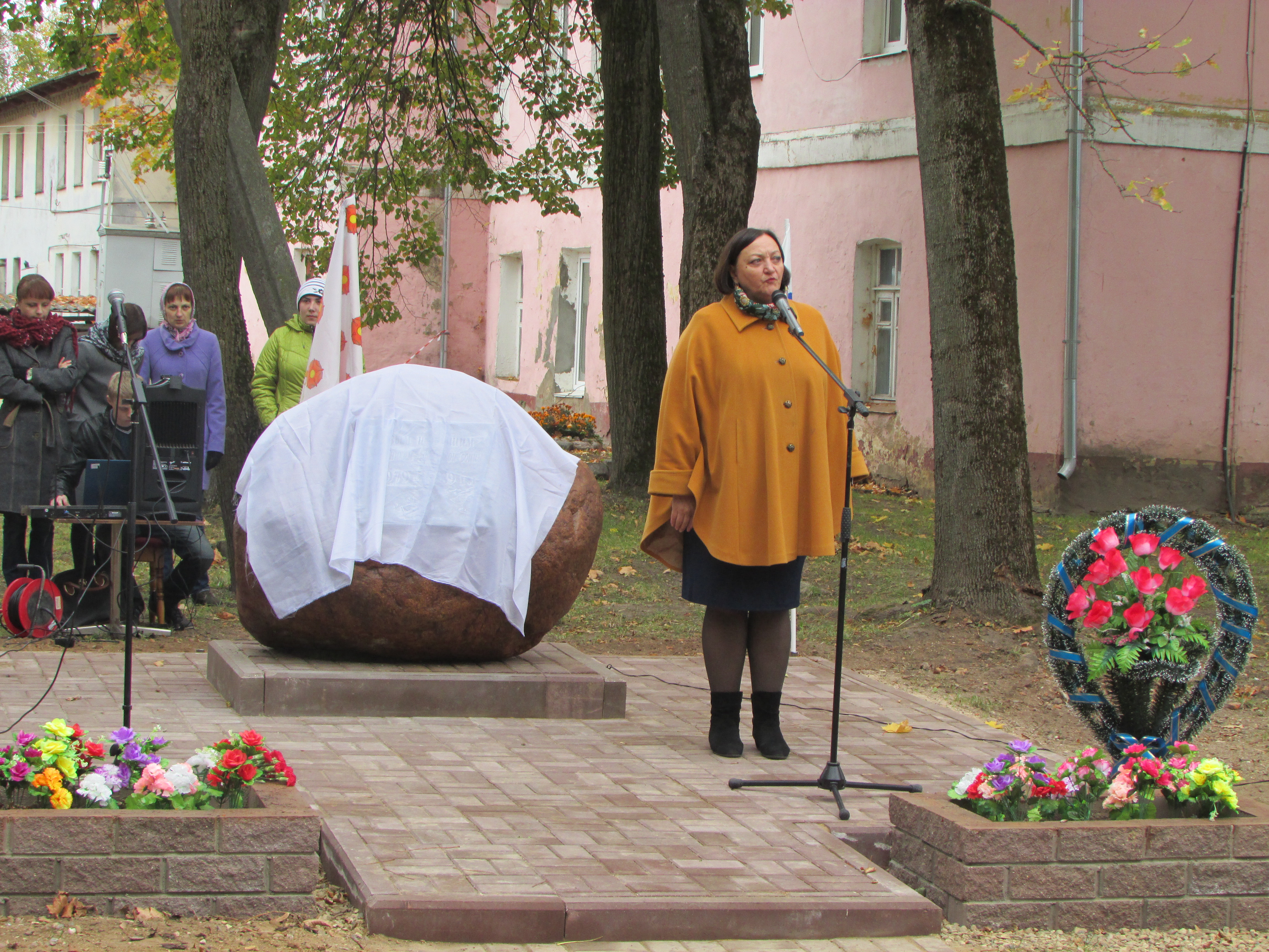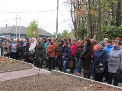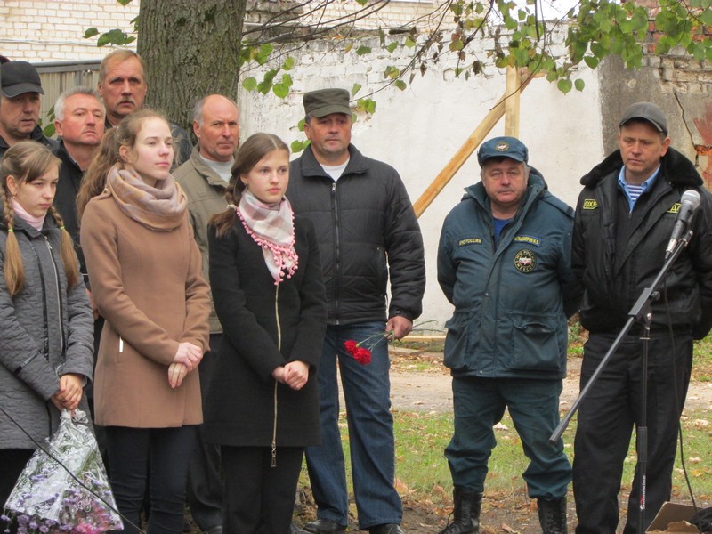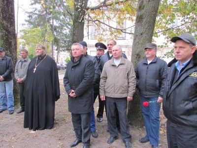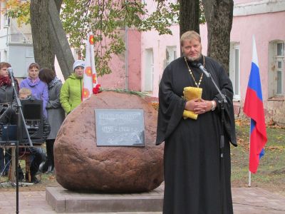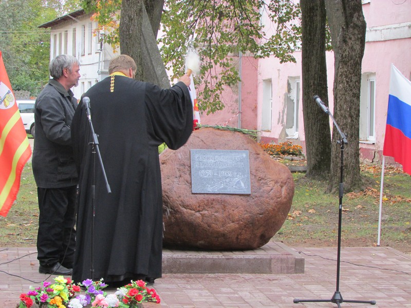 После торжественного открытия памятного знака состоялось его освящение настоятелем Духовщинского храма отцом Олегом.