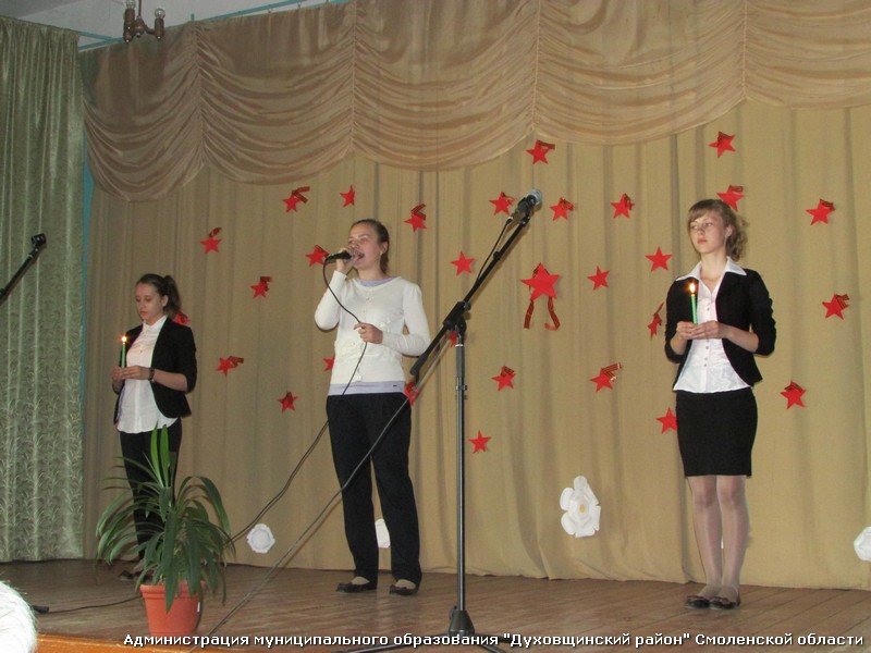 В начале мероприятия перед ветеранами выступили духовщинские школьники с литературно-музыкальной композицией, посвящённой радостному и скорбному празднику одновременно – 9 Мая.