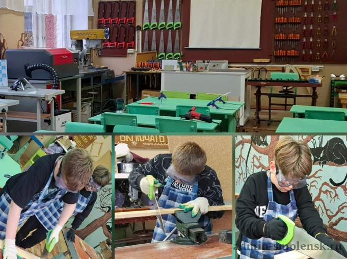 Вместе с опытном педагогом Натальей Шиловой школьники изучают базовые техники обработки древесины. Они осваивают правила разметки, уверенно работают с инструментами и приобретают навыки обработки материала.