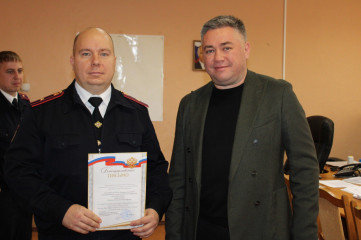Виктор Валерьевич поблагодарил полицейских за их нелегкий каждодневный труд и добросовестное выполнение служебных обязанностей. Он пожелал им успехов в дальнейшей работе и вручил благодарственные письма.