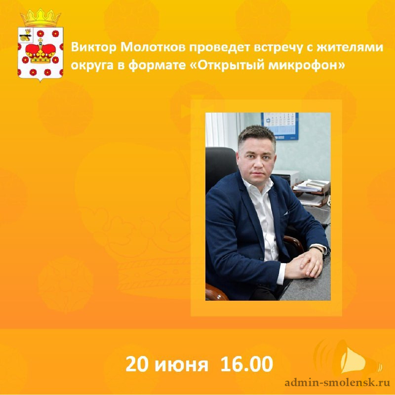 20 июня глава Духовщинского округа Виктор Молотков проведет встречу с жителями в формате "Открытый микрофон".