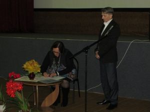 Перед духовщинцами выступил наш земляк, член Союза писателей России, В.В. Королёв, зачитавший отрывок из своей книги о Григории Потёмкине "Ах, какая ДухОвщина!".