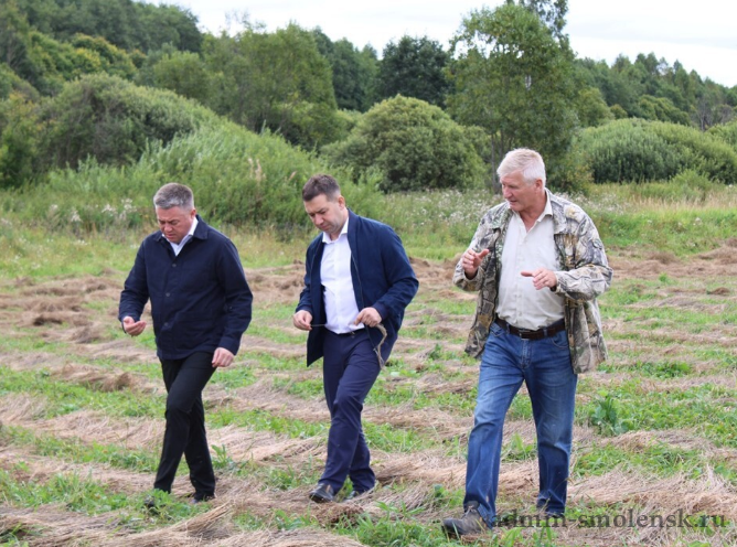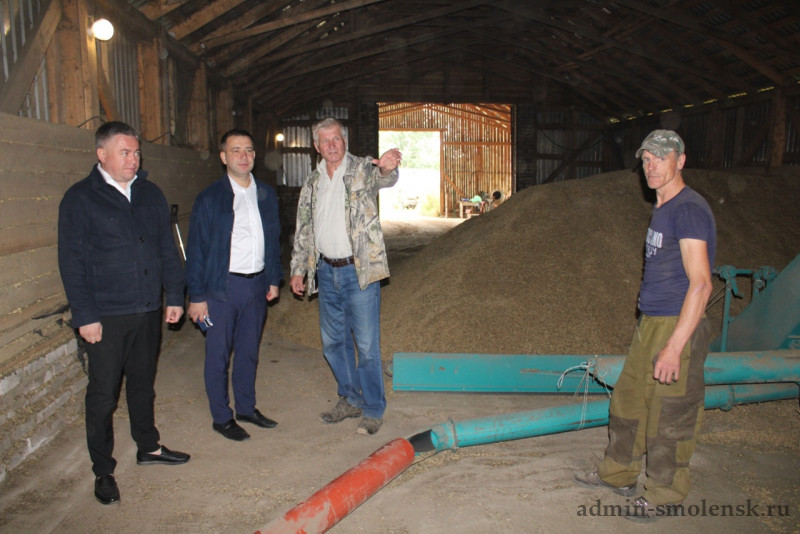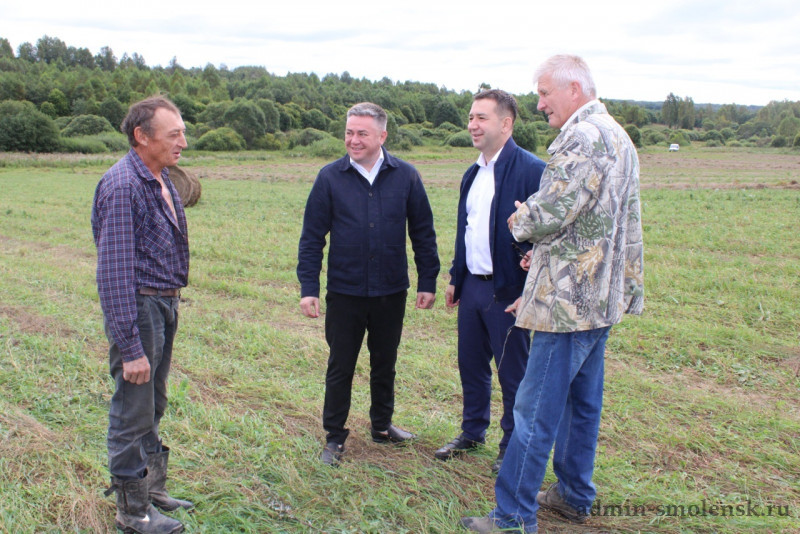 Заместитель председателя Правительства Смоленской области Алексей Кучумов и глава округа Виктор Молотков посетили крестьянско-фермерское хозяйство семьи Шманьковых в деревне Шиловичи.