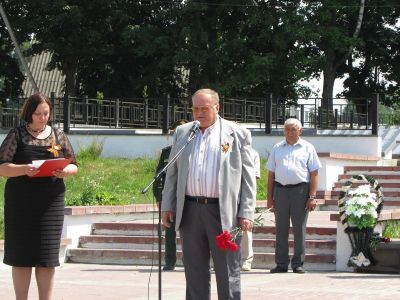 Открывая митинг, глава муниципального образования «Духовщинский район» Б.В. Петифоров напомнил, как вероломно напал враг на нашу страну, ценой каких человеческих страданий и миллионных жертв была завоёвана Победа в той войне. - И если мы сохраним память об этой войне и донесём её до наших потомков, то сможем сохранить мир на земле, - сказал Б.В. Петифоров. – Поэтому одна из приоритетных задач в районе – воспитание молодёжи». Также Борис Викторович поблагодарил ветеранов Великой Отечественной войны за то, что мы живём в мирное время, отметив, что нынешнее поколение в вечном долгу перед теми, кто выстоял в страшной войне.