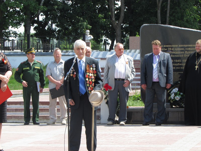 К участникам митинга обратились председатель Духовщинского районного Совета депутатов V созыва В.М. Петрищенков, начальник отдела военного комиссариата Смоленской области по Духовщинскому району А.Н. Векшенков, директор районного историко-художественного музея В.И. Берёзкин, настоятель Свято-Духовского Храма протоирей Олег Козловский.