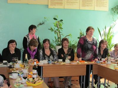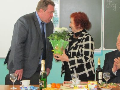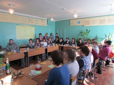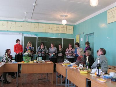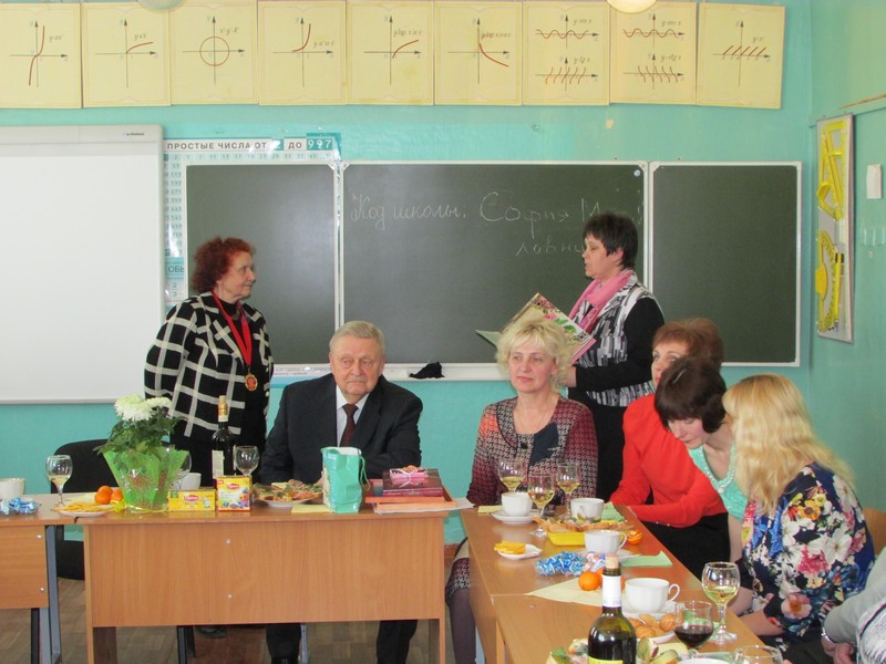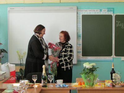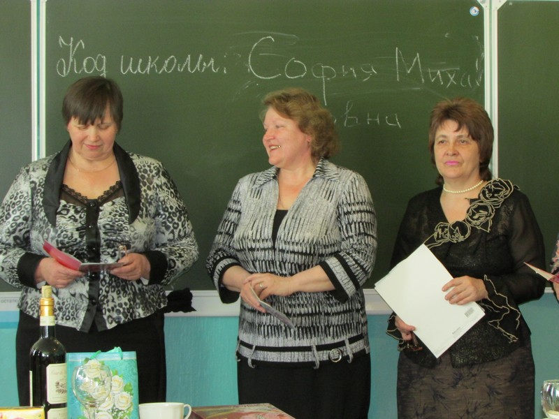 Дополнение. Учителя, коллеги юбилярши, на предшествующем поздравлению совещании приняли единогласное решение: в 2015 году на слёт передовиков района от МБОУ Духовщинская средняя школа им. П.К. Козлова послать Журавскую Софию Михайловну.