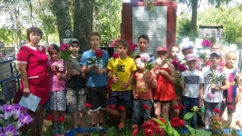 По окончании беседы прошло возложение цветов у памятника павших героев.