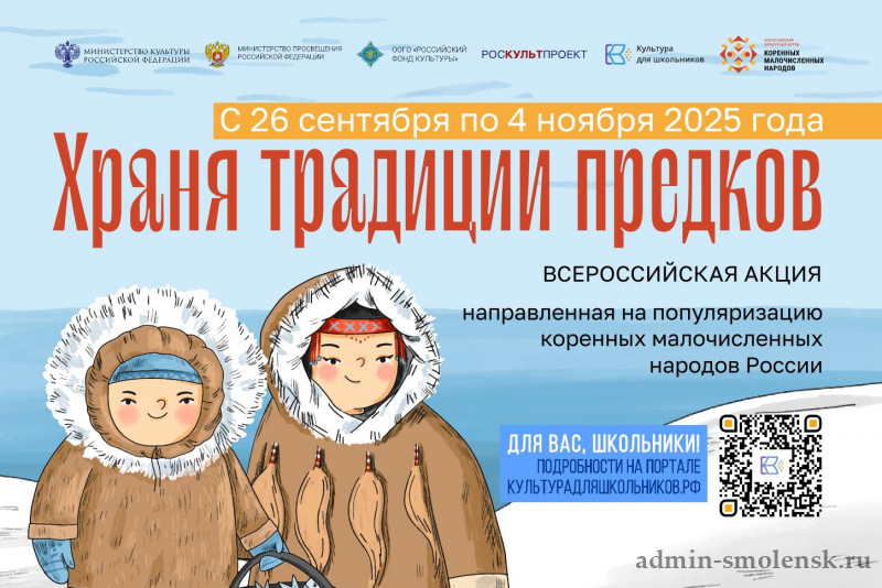 26 сентября 2025 года стартует всероссийская акция «Храня традиции предков», организованная в рамках проекта «Культура для школьников» и Всероссийского культурного форума коренных малочисленных народов России.