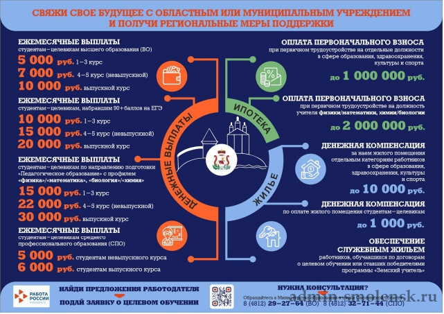 Администрация муниципального образования «Духовщинский муниципальный округ» Смоленской области сообщает о наличии свободного предложения целевого обучения по педагогическим специальностям высшего и среднего профессионального образования.
